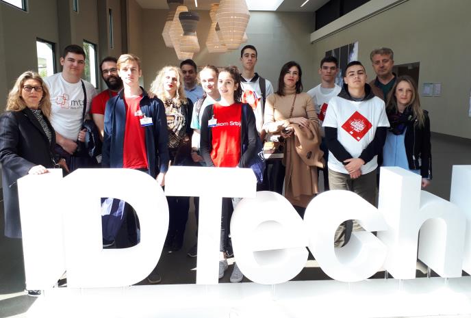 Pobednici drugog Regionalnog app izazova, talentovani srednjoškolci iz Sente, Banja Luke i Podgorice, posetili su IDTechEx Show u Berlinu, jednu od vodećih međunarodnih IoT konferencija. Reč je o multisektorskoj konferenciji koja obuhvata različite oblasti primene savremenih tehnoloških rešenja, a za učenike je posebno zanimljiva u delu koji se odnosi na primenu IoT senzorne tehnologije.