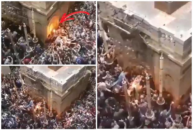 Prvi put, okom kamere, snimljena je vatra Blagodetnog ili Svetog ognja u Jerusalimu na Hristovom grobu.