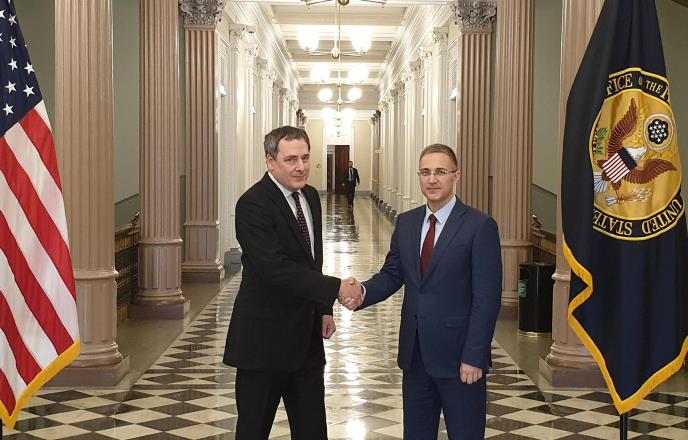 Potpredsednik Vlade Srbije i ministar unutrašnjih poslova Nebojša Stefanović razgovarao je u Vašingtonu, na odvojenim sastancima, sa zamenikom pomoćnika državnog sekretara za evropska i evroazijska pitanja u Stejt departmentu Metjuom Palmerom i zamenikom glavnog direktora za evropske poslove u Nacionalnom savetu za bezbednost SAD Džonom Eratom.