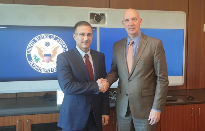 Potpredsednik Vlade Srbije i ministar unutrašnjih poslova Nebojša Stefanović sastao se u Vašingtonu, u okviru zvanične posete Sjedinjenim Američkim Državama, sa Sigal Mandelker, podsekretarkom za terorizam i finansijsko-obaveštajnu delatnost američkog ministarstva finansija.