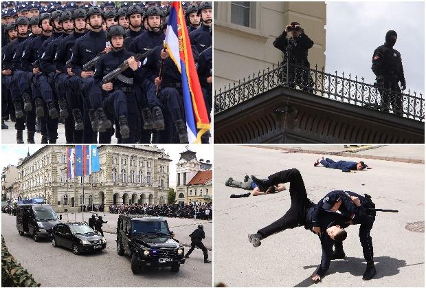 Svečani defile budućih policajaca i vatrogasaca predvodio je zastavni vod Centra za osnovnu policijsku obuku koji su činili polaznici 19. klase, koja se trenutno nalazi na obuci.