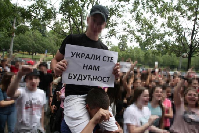 On je pozvao okupljene ispred zgrade Ministarstva prosvete u Nemanjinoj ulici u Beogradu da se uzdrže od bilo kakvog nasilja i da prestanu sa napadima na policijske službenike.