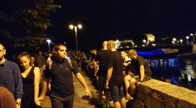 Građani su se okupili u znak protesta jer je prošle nedelje na keju u centru grada izboden mladić jer je odbio da skine majicu na kojoj je pisalo "antifašista".