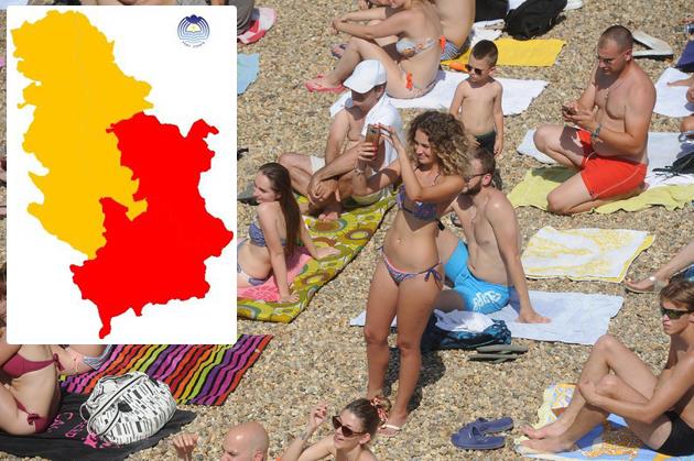 Na snazi je crveni, odnosno najjači meteoalarm u Pomoravlju, istočnoj i jugositčno Srbiji i na Kosovu. U ostalim delovima Srbije na snazi je narandžasti meterolaram, ali uz alarm zbog ekstremno visokih temeperatura, upozorava se i na grmljavinu, odnosno nevreme.