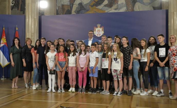 Predsednik Aleksandar Vučić ugostio je danas u zdanju na Andrićevom vencu decu iz osnovnih škola sa severa Kosova i Metohije.