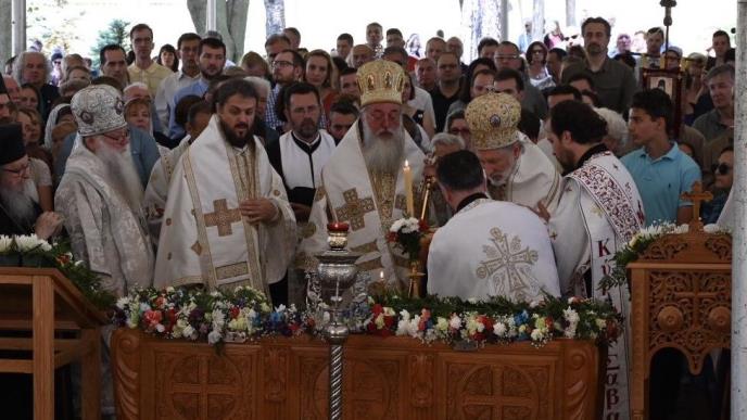 Nakon liturgije, koju su saslužila četiri episkopa SPC koji stoluju na američkom kontinentu, novogračanički i srednjezapadnoamerički Longin, zapadnoamerički Maksim, istočnoamerički Irinej i kanadski Mitrofan, okupljenim vernicima na platou ispred manastira se obratio domaćin, vladika Longin,koji je istakao značaj svetosavskog puta i zahvalio prisutnima na dolasku, a onda uručio orden Svetog Save arhiepiskopu Dimitroisu, poglavaru Grčke pravoslavne crkve u Americi.