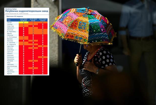 Indeks UV zračenja gotovo u celoj Srbiji je u kategoroji veoma opasna pojava i označena brojem osam, od maksimalnih 11.