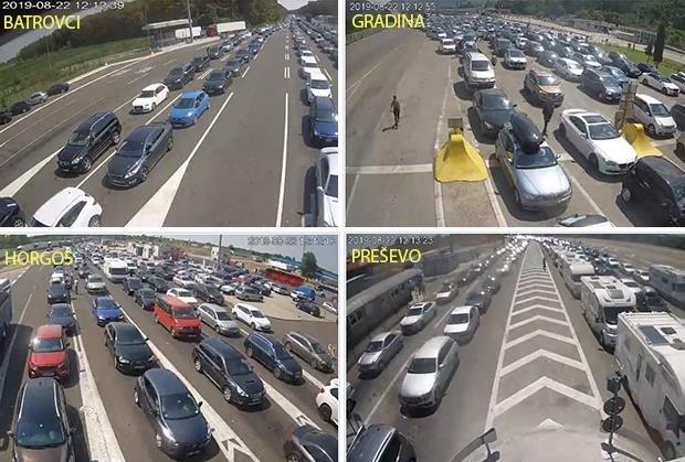Putnička i teretna vozila na graničnom prelazu Horgoš, sa Mađarskom, na izlaz iz Srbije čekaju sat i po, dok na prelazu Kelebija na izlaz iz zemlje putnička vozila čekaju pola sata, a teretna četiri sata, saopštilo je danas Javno preduzeće "Putevi Srbije".