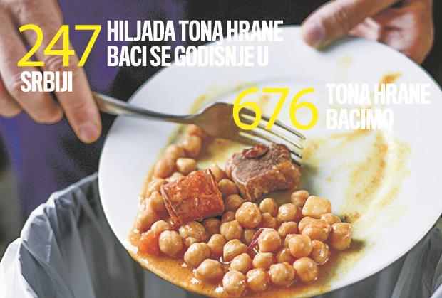 Ovo pokazuju rezultati istraživanja o bacanju hrane u domaćinstvima u Srbiji koje je sproveo Centar za unapređenje životne sredine. Njihova analiza pokazuje da se svake godine u Srbiji baci 247.000 tona hrane, što je na dnevnom nivou čak 676 tona.