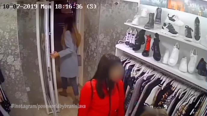 Na snimku, koji se ranije pojavio na društvenim mrežama, vide se devojke kako ulaze u butik, prva nosi belu jaknu preko ruke, a druga nosi kese u rukama.