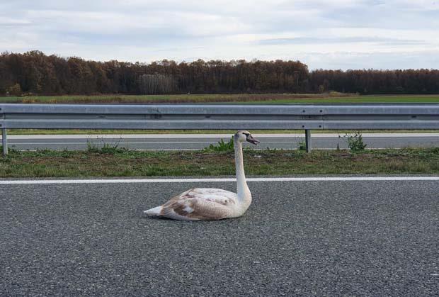 LABUD ZVANI HRABROST! Putnici auto-puta Beograd-Zagreb nisu mogli da veruju koga vide na putu! (FOTO)