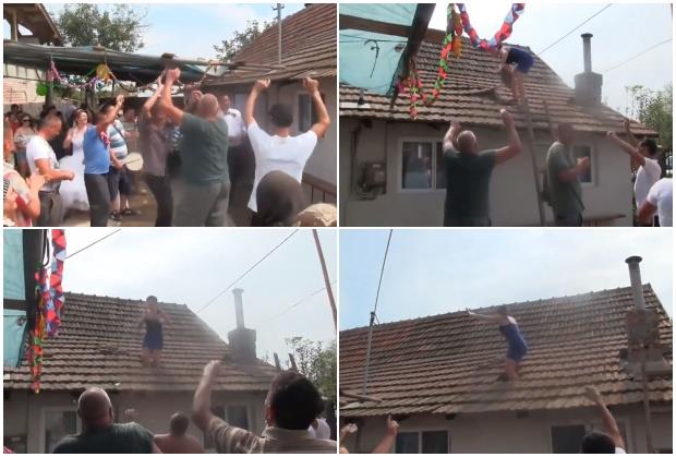 Slavlje u dvorištu kulminiralo je kada se uz zvuke trube kuma popela na krov, a onda počela da lomi crepove.