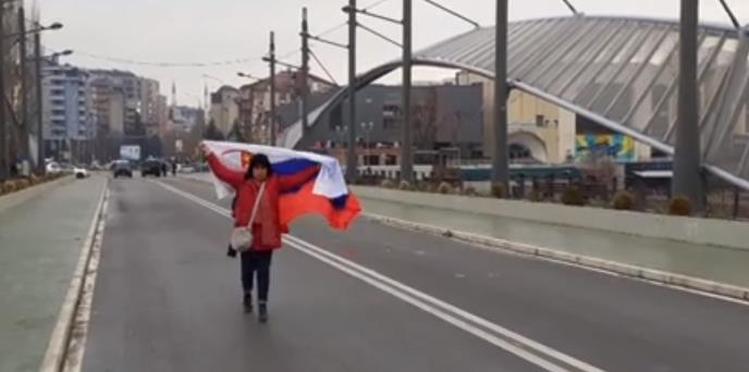 Negde na polovini mosta ova žena je sklopila trobojku kojom je bila ogrnuta, međutim, zaustavila ju je patrola kosovske policije i kako prenosi Kosovo pres, posle kraćeg saslušanja žena je privedena.