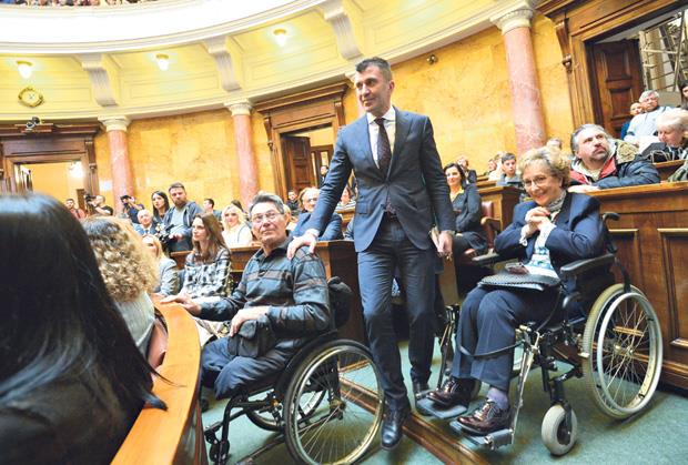 On je na skupu „Pristupačna budućnost“ u parlamentu, uoči Međunarodnog dana osoba s invaliditetom, rekao da je problem osoba s invaliditetom to što još uvek ne postoje pristupne rampe u brojnim ustanovama, te su one tako nedostupne za njih.