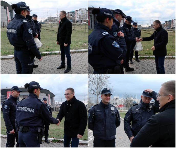 "Ovi ljudi rade i po zimi i po snegu, vikendom i praznicima, neumorno štiteći bezbednost građana naše zemlje. Posebno sam ponosan što u našim patrolama imamo i nove, mlade, policajce koji imaju priliku da uče posao na terenu od svojih iskusnijih kolega patrolirajući ulicama Srbije zajedno sa njima, rekao je Stefanović, koji ih je iznenadio toplom kafom i doručkom, saopštio je MUP.