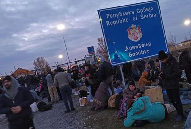 Migranti, od kojih većina tvrdi da su iz Sirije, nalaze se na ničijoj zemlji između dva granična prelaza, traže da uđu u Mađarsku i kažu da će tu ostati celu noć, čekajući rešenje.