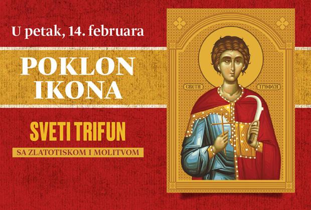 Srpska pravoslavna crkva i svi njeni vernici u petak, 14. februara, obeležavaju Svetog Trifuna zaštitnika bračne ljubavi i vernosti. Tog dana, dnevne novine Kurir poklanjaju ikonu sa zlatotiskom i molitvom.