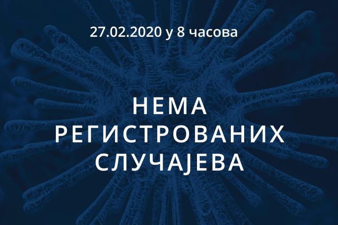 Do 26.02.2020. godine u nacionalnoj referentnoj laboratoriji Instituta Torlak testirano je 16 osoba koje su ispunjavale kriterijume definicije slučaja (boravak na području intenzivne transmisije virusa i prisustvo simptoma infekcije disajnih puteva). Uzorci svih testiranih osoba bili su negativni na novi korona virus. Dana 27.02.2020. godine do 8h testirani su uzorci još 4 osobe koji su takođe bili negativni na novi korona virus.