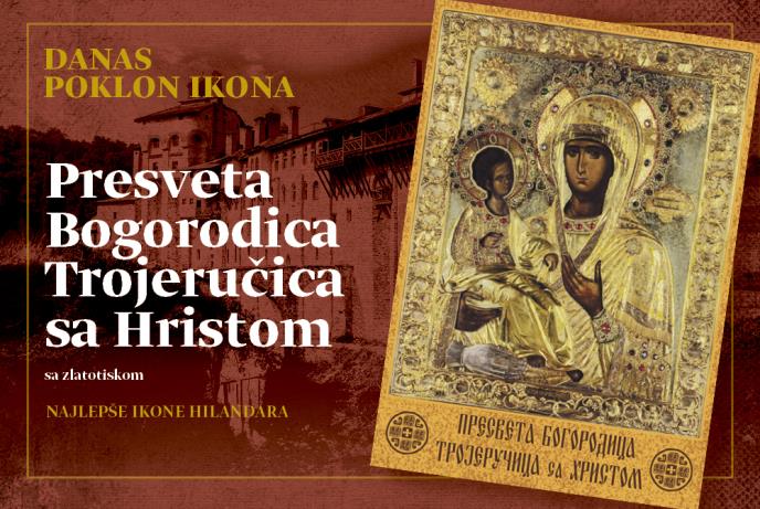 Danas ćete uz dnevne novine Kurir dobiti na poklon ikonu Bogorodica Trojeručica sa Hristom. Ikona Bogorodice Trojeručice, pripada redu nerukotvorenih ikona ili onih ikona koje je ikonopisao apostol i jevanđelist Luka, prvi slikar hrišćanstva. Ime je dobila u 8. veku. U to vreme se pojavila ikonoboračka jeres, a jedan od njenih najvećih protivnika bio je Jovan Damaskin kojem su iz tog razloga odsekli desnu ruku.