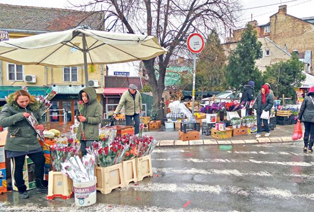 Zorka Radivojević, radnica jedne cvećare, žali se da su im velika konkurencija ulični prodavci, kao i to da su im cene iste kao i njihove. - Mnogo je manje posla nego što smo očekivali. Juče su muškarci kupovali više od žena, dok su za Dan zaljubljenih više pazarile žene. Štede muškarci za 8. mart i još, ako može, da se sakrije cvet koji kupe, kažu: „Skrati, stavi u kesu!“ Stide se, izgleda, ili cvet možda ide nekom kome ne bi smelo. Aranžmani slabije idu, dok se najviše prodaju ruže i lale - ispričala nam je Zorka.