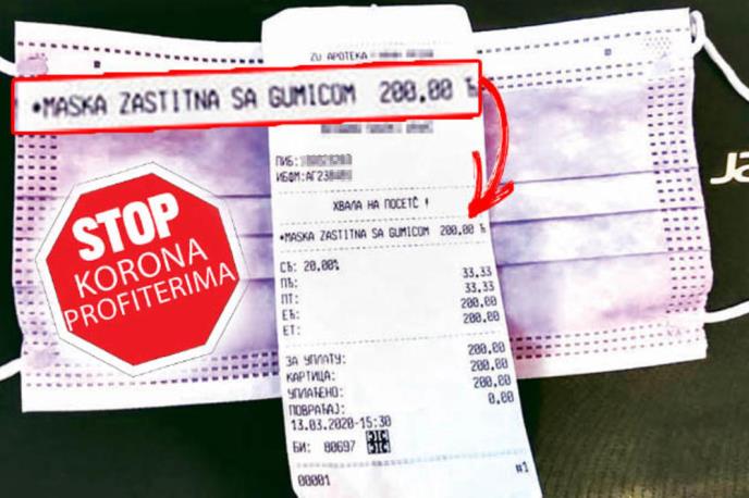 Tako su cene mnogih proizvoda poslednjih dana vrtoglavo skočile, a maske, koje su najtraženiji artikal, u nekim beogradskim apotekama poskupele su za čak deset puta. One su pre epidemije koštale oko 20 dinara, a sada se prodaju za čak 200 dinara po komadu.