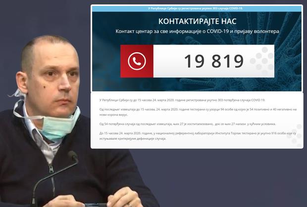 SRBIJA - U Republici Srbiji su do 15 časova 24. marta 2020. godine registrovana ukupno 303 potvrđena slučaja COVID 19.