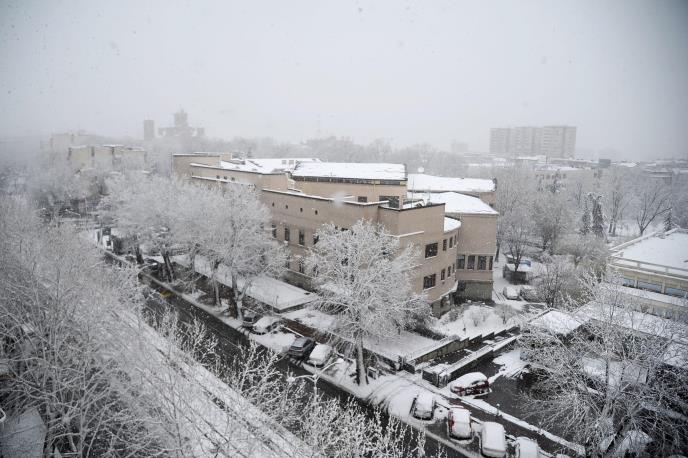 I u Beogradu oblačno, povremeno sa snegom uz manje povećanje visine snežnog pokrivača. Kasno posle podne slabljenje, a uveče prestanak snega.