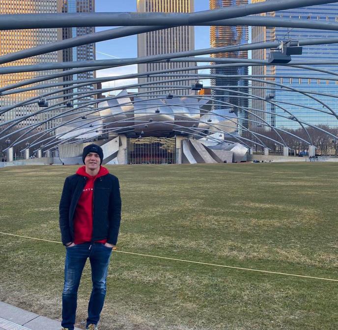 U Čikago je došao na prolećni raspust i nije slutio da će se korona brzo proširiti planetom. Čim je od ujaka saznao da zbog korone Srbija zatvara granicu odmah je počeo da razmišlja o povratku. Uspeo je da dođe do avionske karte za Beograd preko Istanbula, ali se dan kasnije čuo sa ocem i saznao da je u Srbiji epidemija sve ozbiljnija i da će ako se vrati morati u karantin. Pošto tada u SAD korona još nije ozbiljno zavlada odlučili su da je bezbednije da ne dolazi.
