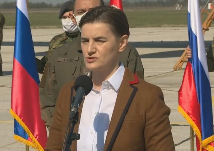 "Imamo sve što nam treba da pobedimo, naše partnere, saradnike iz celog sveta. Ovo je jedan od deset aviona koji šalje predsednik Rusije Vladimir Putin. Imamo opremu, odlične lekare, medicinske sestre, naučnike, laboratorije. Imamo sve što nam treba. Ali fali nam i dalje disciplina. Bez gvozdene disciplijne ne možemo da pobedimo ni sa svim lekovima, opremom, million respiratora, niti sa podrškom stručnjaka iz Rusije, EU, Kine, SAD", naglasila je Brnabić.