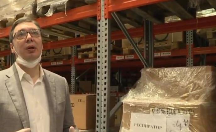 Predsednik Srbije posetio je magacin medicinske opreme u Krnješevcima kod Stare Pazove.