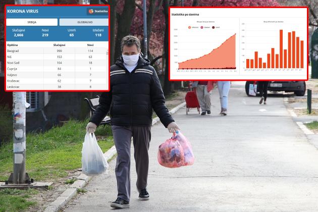 Danas do 15 sati registrovano je još 219 novih slučajeva virusa korona u Srbiji, ukupno 2.666, dok su još cetriri osobe preminule, ukupno 65.