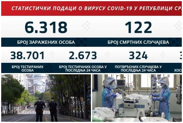 Do sada je u Srbiji ukupno 6.318 zaraženih korona virusom, a izlečeno je 753 pacijenta. Od poslednjeg izveštaja testirani su uzorci 2.673, dok je hospitalizovano 3.900 zaraženih.