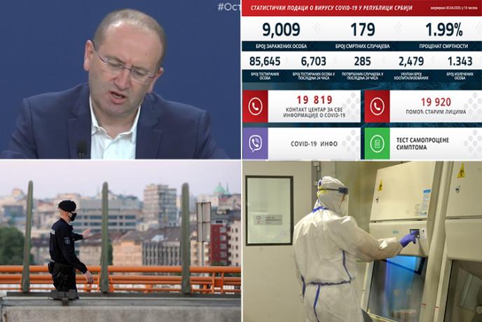 SRBIJA - U Srbiji danas do 15 časova registrovano je ukupno 9.009 zaraženih, od toga 285 novih pozitivnih. Na respiratoru je 71 pacijent. U proteklih 24 časa registrovano je nažalost još 6 smrtnih slučajeva - 4 žene i 2 muškarca što je dosad ukupno 179 preminulih.