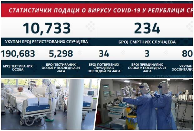 U poslednja 24 časa preminule su tri osobe. Ukupan broj preminulih od početka epidemije je 234.