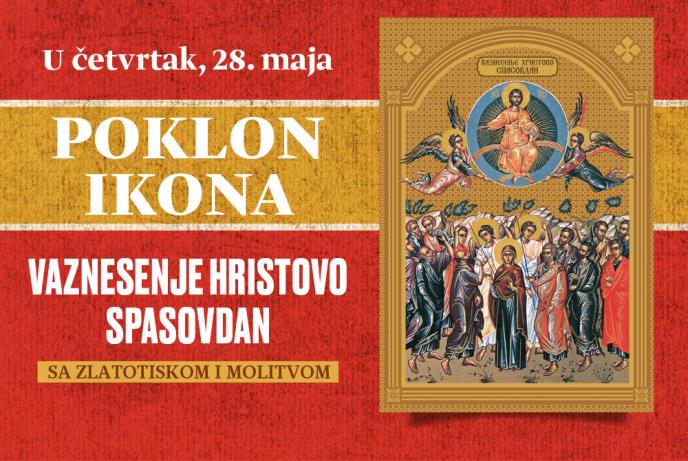 Srpska pravoslavna crkva i njeni vernici u četvrtak, 28. maja, obeležavaju Vaznesenje Gospodnje, praznik koji je u narodu poznat kao Spasovdan. Tog dana, Kurir poklanja ikonu VAZNESENJE GOSPODNJE sa zlatotiskom i molitvom.