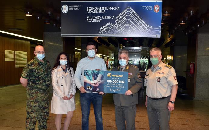„Uprava za vojno zdravstvo Ministarstva odbrane izuzetno ceni saradnju s kompanijom Mozzart koja potiče još iz aprila 2018. godine kada smo potpisali ugovor o donaciji 400 televizora u vrednosti više od 11.000.000 dinara. Od tada se Mozzart kontinuirano ponaša kao izuzetno društveno dogovorna kompanija te je i na početku epidemije virusa korona u našoj zemlji ova kompanija ponudila pomoć vojnom zdravstvu. S obzirom na naše dovoljne kapacitete preusmerili smo ih da pomognu civilnim zdravstvenim ustanovama kojima je pomoć bila potrebnija. Ova donacija u vrednosti 700.000 dinara biće iskorišćena za nabavku potrebne opreme u Vojnomedicinskoj akademiji. Imajući u vidu broj kvadratnih metara radnih površina u ovoj vojnozdravstvenoj ustanovi, upotrebićemo namenjena sredsta za nabavku aparata za dezinfekciju i čišćenje prostora, čime ćemo dodatno poboljšati uslove za pacijente i rad zaposlenih“, naveo je general Jovičić.