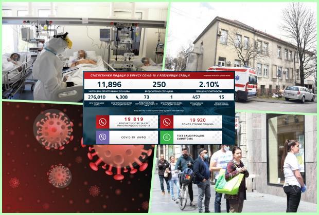 U poslednja 24 sata testirano je 4.308 osoba, od kojih su 73 pozitivne, dok su juče, na osnovu 3.317 testiranih, potvrđena 82 slučaja. U Srbiji je od početka epidemije zaraženo ukupno 11.896 osoba.