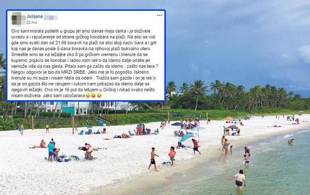 "Ovo sam morala podeliti u grupu jel smo danas moja ćerka i ja doživele uvredu a i razočarenje od strane grčkog konobara na plaži.