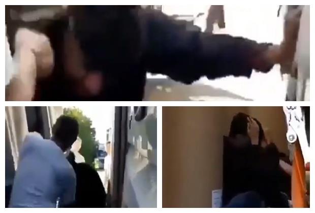 Na snimku se vidi da ih vozač udara pesnicama, iako se oni ne brane i ne uzvraćaju udarac.