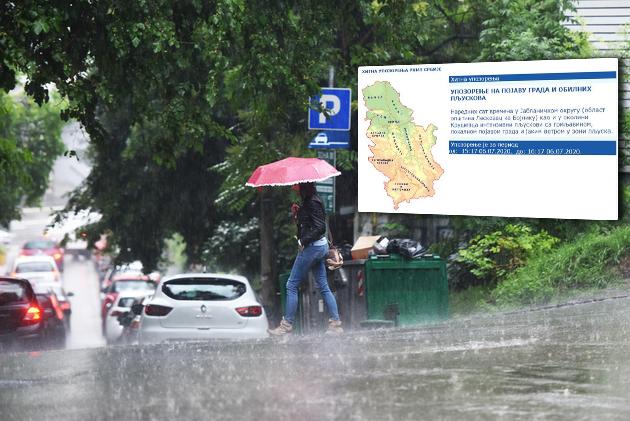 Republički hidrometeorološki zavod (RHMZ) izdao je hitno upozorenje koje se odnosi na Jablanički okrug, kao i okolinu Kruševca.