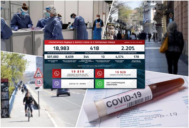 Od početka epidemije u Srbiji obolelo je ukupno 18.639 osoba, trenutno je aktivno 4.294 slučajeva a procenat smrtnosti je 2,17 odsto.