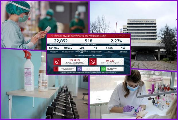 U poslednja 24 sata širom Srbije na korona virus testirano je 10.634 osoba, njih 409 bilo je pozitivno, a nažalost preminulo je 10 osoba.