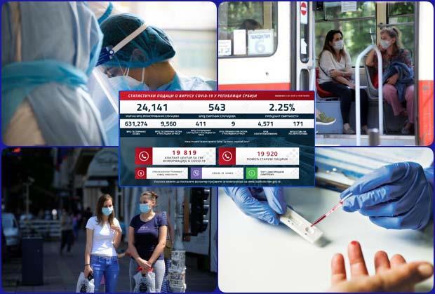 U poslednja 24 sata u Srbiji je na korona virus testirano 9.560 osoba, pozitivno je bilo njih 411, dok je nažalost preminulo devet lica.