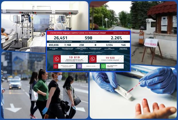 U prethodna 24 sata testirano je 7.168 osoba, a hospitalizovana su 3.554 pacijenta. Ukupan broj preminulih tako se popeo na 598 od početka pandemije.