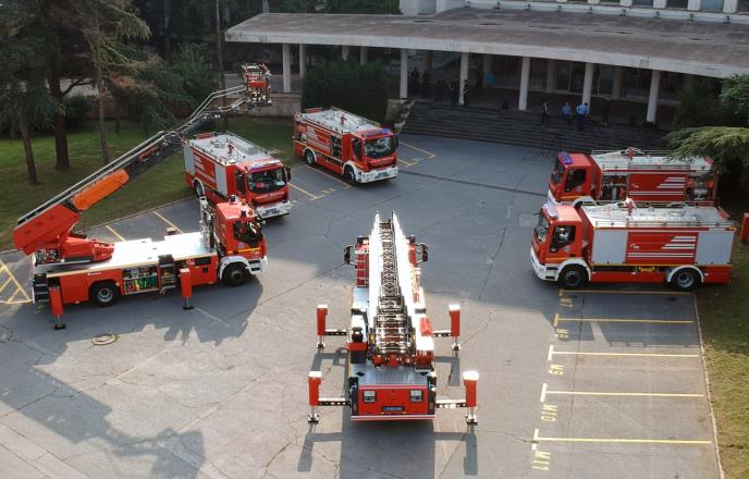 „I ovih šest kamiona pokazuju našu nameru da u potpunosti modernizujemo vozni park vatrogasno-spasilačkih jedinica“, rekao je Stefanović i objasnio da Sektor za vanredne situacije danas pored cisterni, dobija i dva hidraulična vozila sa korpama koje, uz pomoć lestvi, mogu da se podignu na visinu od 30 metara.