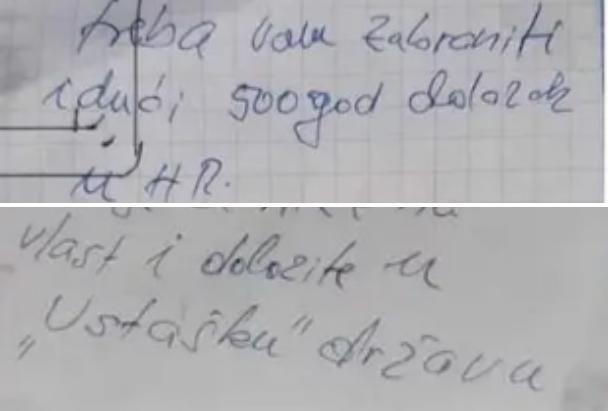 " Koljači, četnici, ubice, propada vam velika Srbija. Pobili ste 200.000 ljudi, s Balkana je otišlo 1,5 miliona. Sve ste uništili, birate i dalje četnike na vlasti i dolazite u "ustašku" državu.