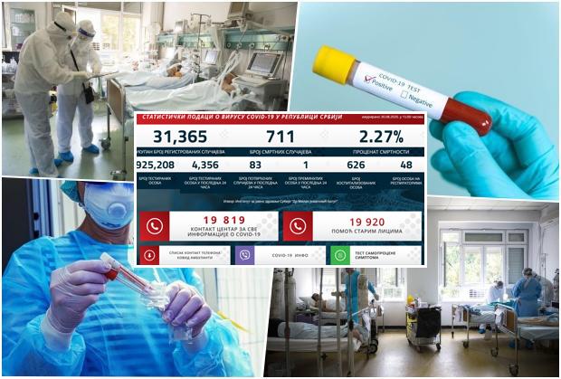 U poslednjih 24 sata na korona virus u Srbiji testirano je 4.356 osoba, a pozitivne su 83 osobe.