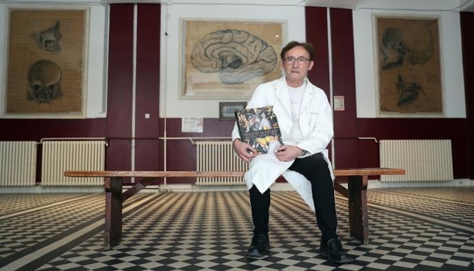 Profesor dr Slobodan Moca Marinković, koji već 30 godina živi u svom kabinetu sa leševima za vežbe studenata i pacovima za naučna istraživanja, objavio je sa prof. dr Branislavom Filipovićem i prof. dr Laslom Puškašem jubilarno izdanje „Anatomije čoveka“ povodom prvog predavanja iz anatomije i stogodišnjice Medicinskog fakulteta u Beogradu.