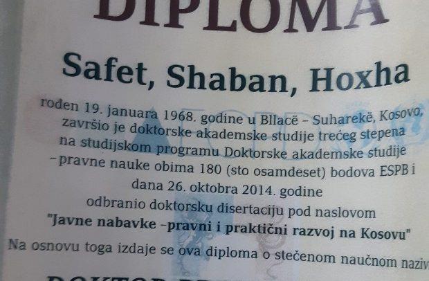 Izvor iz Ustavnog suda takozvane i nepriznate države Kosovo dostavio je kopiju diplomu Safeta Hodže, koja je overena i na kragujevačkom Univerzitetu!? Diploma do koje smo došli trenutno se proverava kod nadležnih službi!