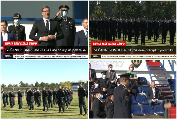 Predsednik Srbije Aleksandar Vučić prisustvuje svečanoj promociji 23. i 24. klase polaznika Centra za osnovnu policijsku obuku u Nastavnom centru "Makiš".